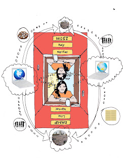 Throughout this process, we discussed the possibility of whether we might be living parallel lives in cities on opposite sides of the world. We used the Radio Lab show The (Multi) Universe(s) as a starting point, and Lisa drew this great image in summation, merging our facial features and making connections between us.
