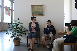 Citizen Jen Elder and family eating ice cream sandwiches provided as part of the exhibition: