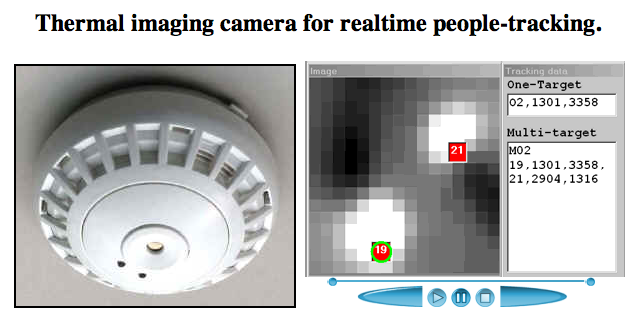 And, last but not least, Chris O’Shea made ofxThermitrack, an OF interface to the Thermitrack thermal imaging camera, which provides “high-resolution position data from people moving within its field of view” (and looks like a smoke detector):
